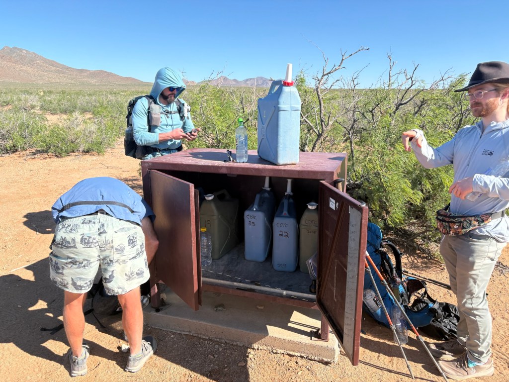 Die Sonne prassele ohne Gnade, aber heute war ich gewarnt und versorgte mich mit viel Wasser ( ca. 8 Liter) versetzt mit hydrolytische Energie). In der Einöde wurden extra für uns Water Cashe Box eingerichtet, wo frisches Wasser deponiert war.