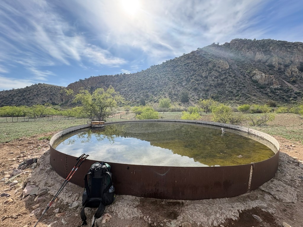 Eine halbe Stunde zu spät aufstehen wart beabsichtigt. Nun lagen noch 38 Kilometer bis Silver City vor mir. Die ersten 17 km zeigte das Profi ständig bergab und versprach eine gewisse Entspannung. Zumal an dem Punkt die einzige Wasserstelle lag. Danach lagen noch 19 Kilometer etwas bergauf, bei brütender Hitze und auf Asphalt vor mir☹️.